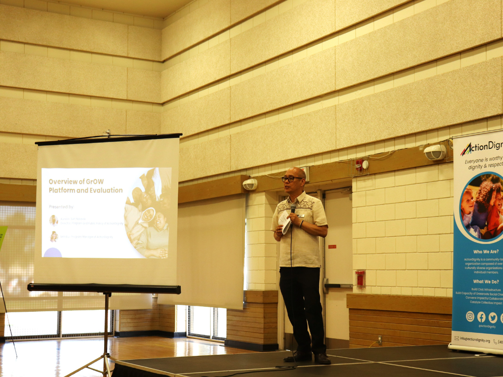 Last Friday, ActionDignity hosted an inspiring and educational evening with over 100 participants from funders and communities at our GrOW (Grassroots Organizational Empowerment) Platform Knowledge Mobilization event. This event highlighted the findings from our GrOW Platform evaluation and fostered meaningful conversations on how the GrOW initiative and funders can better support our ethnocultural organizations.