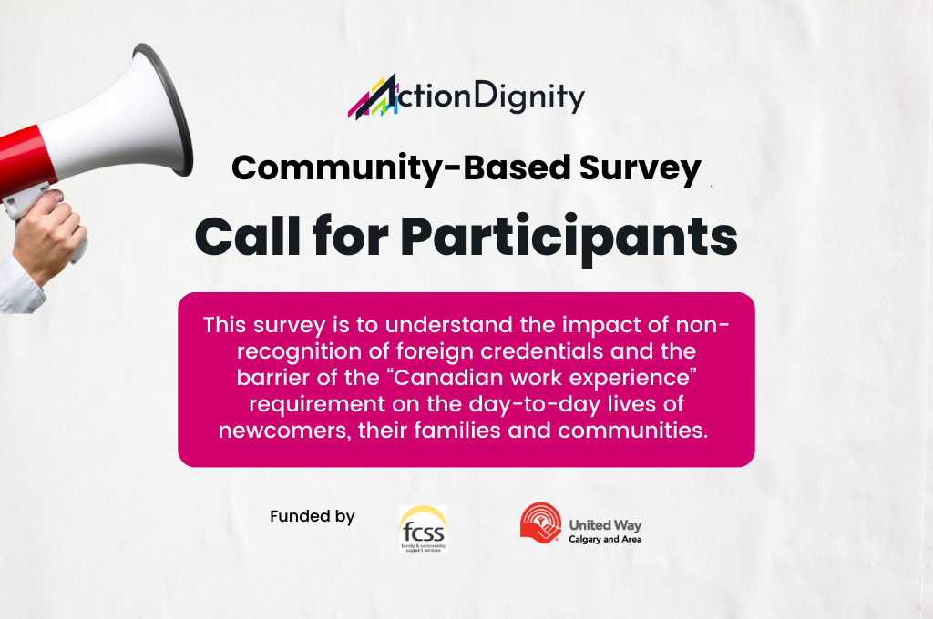 ActionDignity is conducting a community-based study to better understand how the non-recognition of foreign credentials and the requirement for Canadian work experience affect the daily lives of newcomers, their families, and their broader communities.