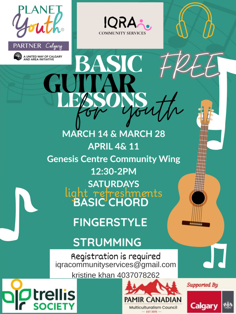IQRA Community Services, in partnership with Planet Youth Calgary and community partners, is offering Free Basic Guitar Lessons for Youth.