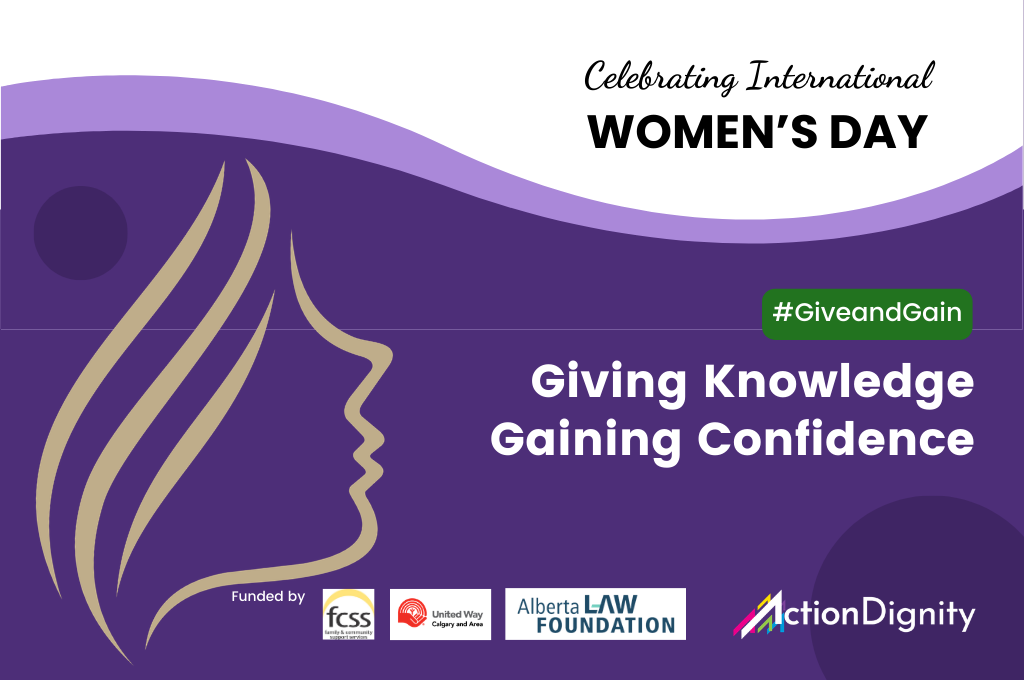 Join ActionDignity for International Women’s Day 2026 as we embrace the global theme “Give to Gain” through our focus on Giving Knowledge, Gaining Confidence. This engaging and interactive event centers on education, empowerment, and connection for racialized women in our community. Participants will rotate through four dynamic 20-minute learning sessions designed to spark dialogue, build confidence, and inspire action. Together, in a safe and inclusive women-centered space, we will reflect, connect, and transform shared experiences into meaningful strategies for positive community change.