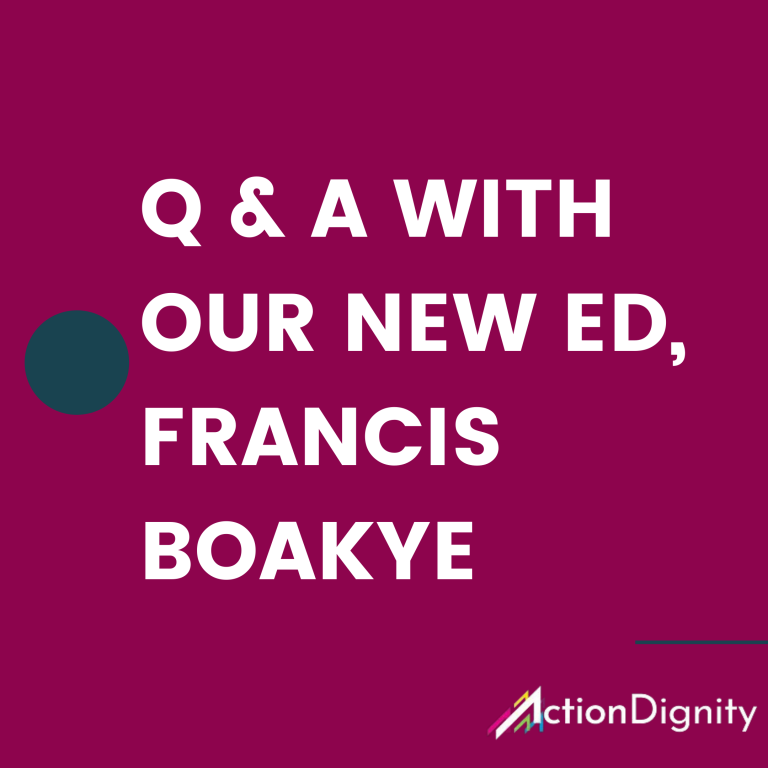 My vision for the future of Action Dignity is simple and that is to ensure this unique organization remains relevant and viable. Action Dignity plays a crucial role in addressing macro-level issues (structural, systemic) that affect the day-to-day lives of individuals in our community. To this effect, I would love to strengthen and deepen relationships with existing partners (community members, business leaders, funders, donors etc.), and build new relationships as well. This is guided by the ubuntu philosophy of life that states that ‘I am because you are’ and my mother’s favourite proverb that only one strand of a broom cannot sweep the floor.