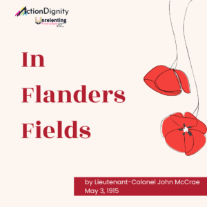 In Flanders Fields, one of history’s most famous wartime poems, written in 1915 during the First World War by Canadian officer and surgeon John McCrae. It helped popularize the red poppy as a symbol of remembrance.
